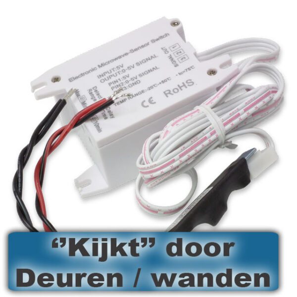 Wordt veel gebruikt in de camper – boot – caravan – schakelen van verlichting in tuinen en ga zo maar door. Het mooie van deze microwave schakelaar is dat hij onzichtbaar weg te werken is, hij ”kijkt” dan ook door hout, kunstof, gipswand en enkelglas heen! Het detectiebereik is met een potmeter op de sensor eenvoudig af te stellen van ongeveer 1-8meter.