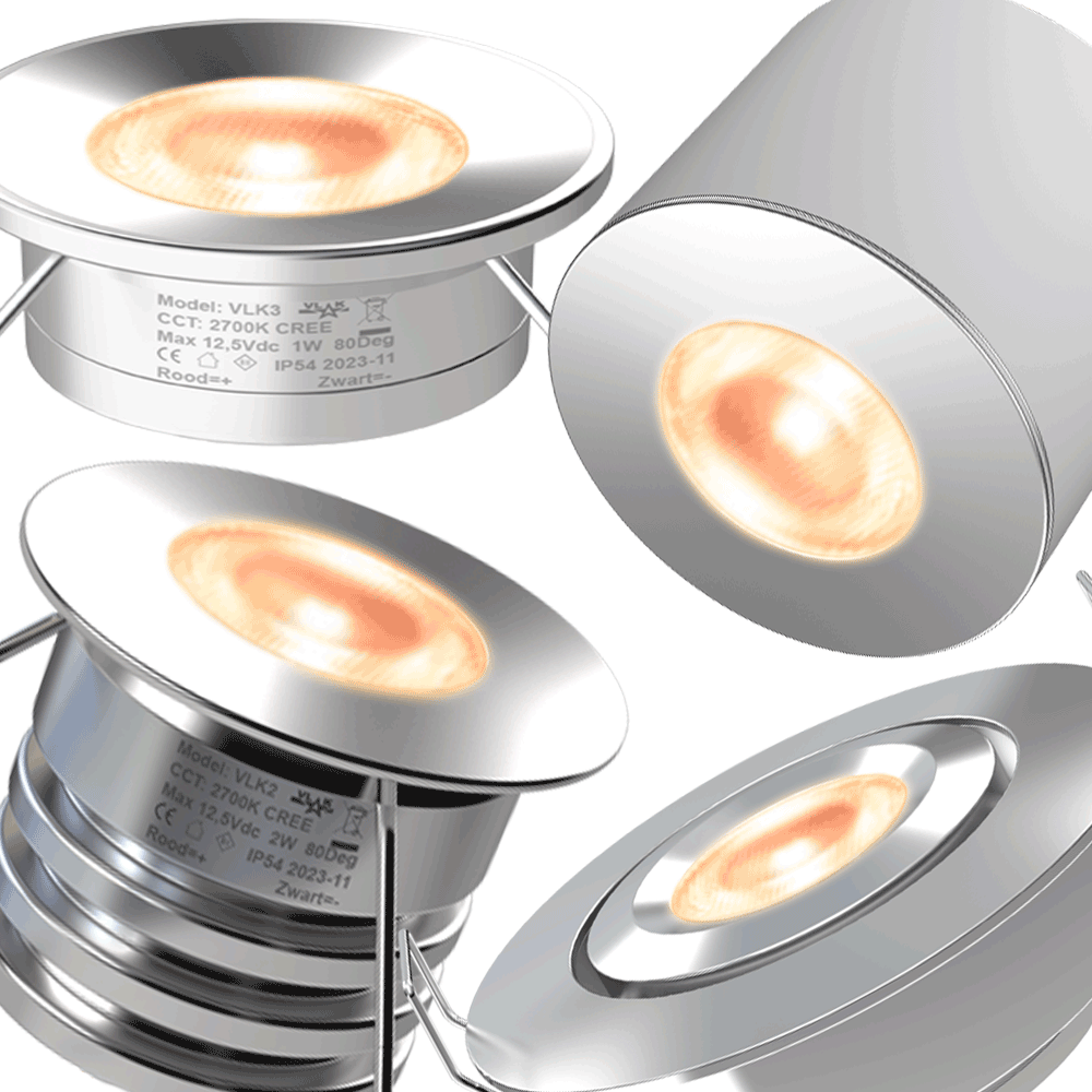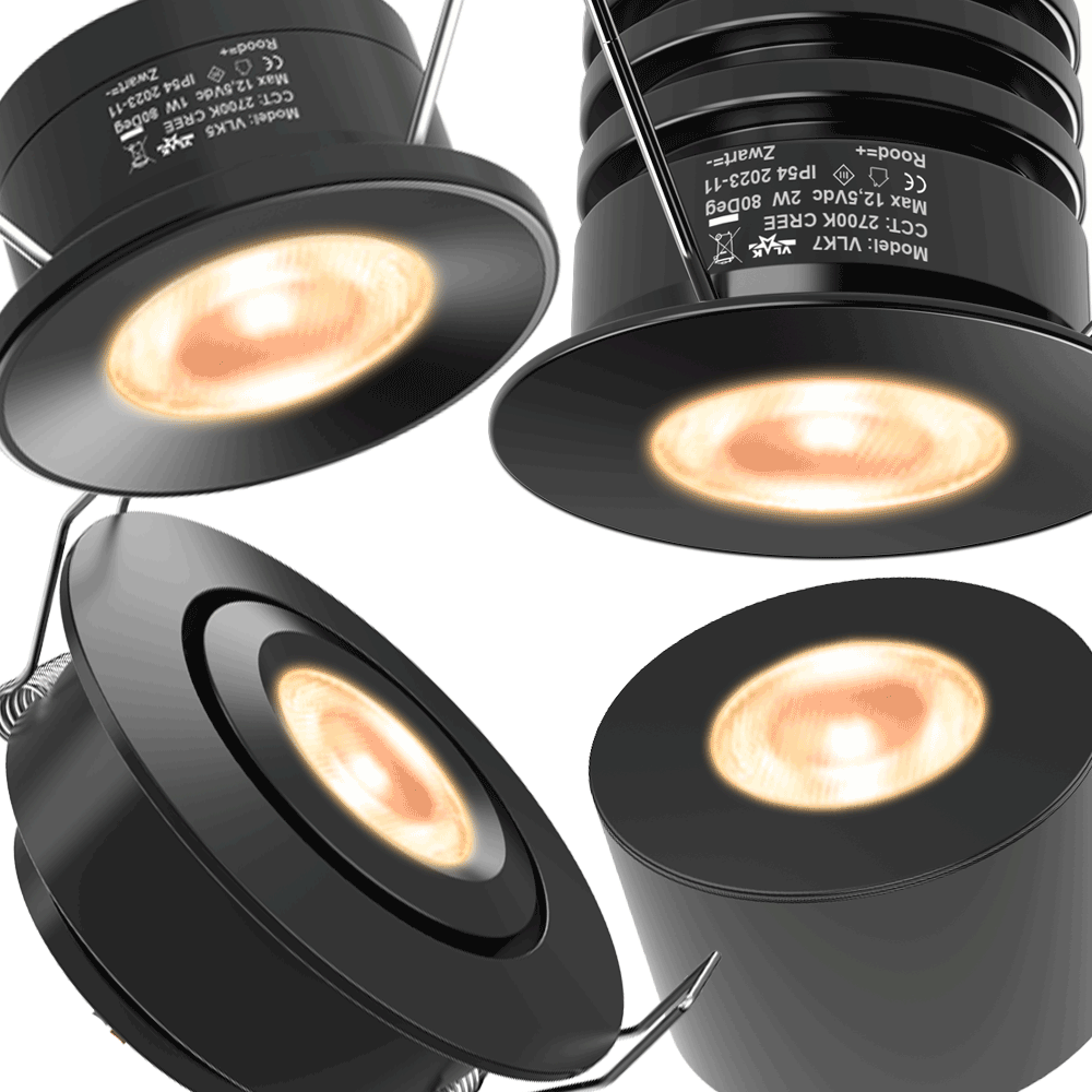 VLK LED-spots bieden hoogwaardige lichtkwaliteit met een CRI van 93, duurzame materialen en flikkervrije dimbaarheid. Ze zijn IP54 waterbestendig, energiezuinig en werken veilig op 12V gelijkspanning.